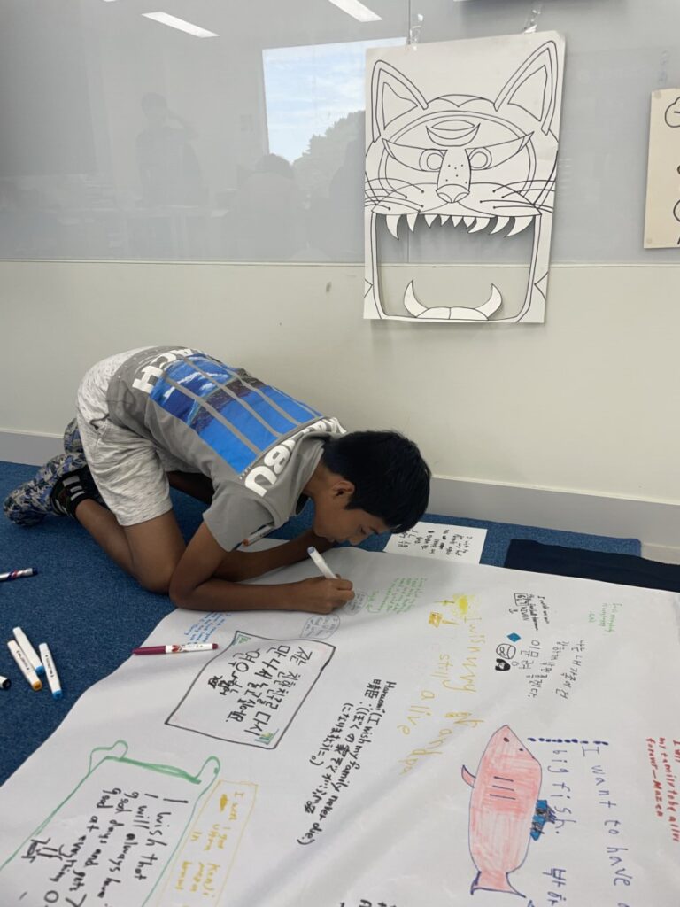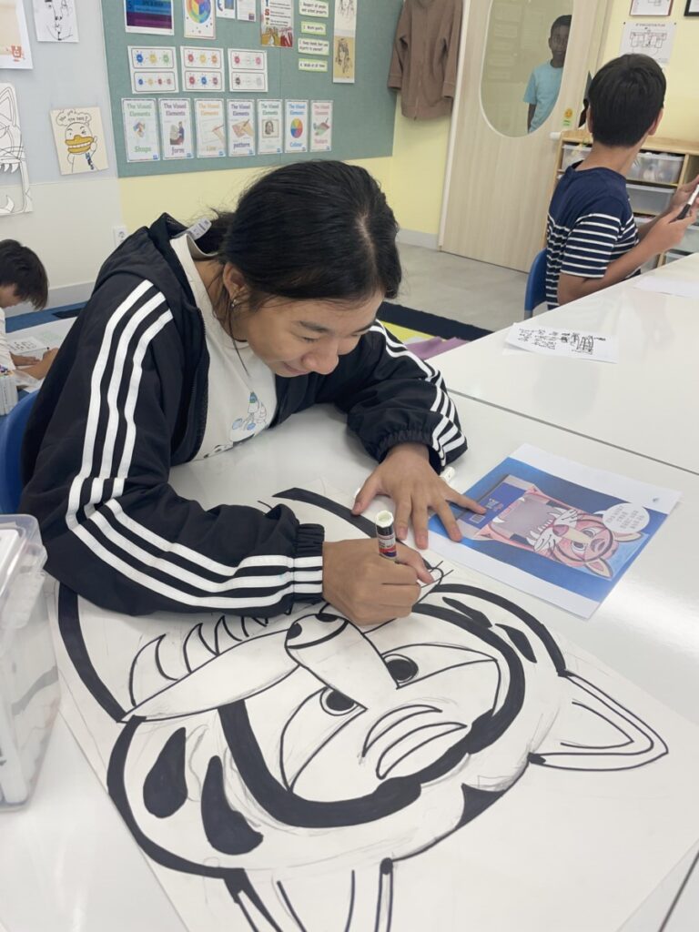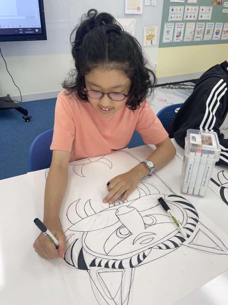 After completing this exercise, the students turned their focus to a cultural project in celebration of Chuseok. They were introduced to a short Korean folktale and then explored the tiger character that inspired the design of a modern Netflix animation, Demon Hunters. Using this as motivation, they created their own tiger characters.