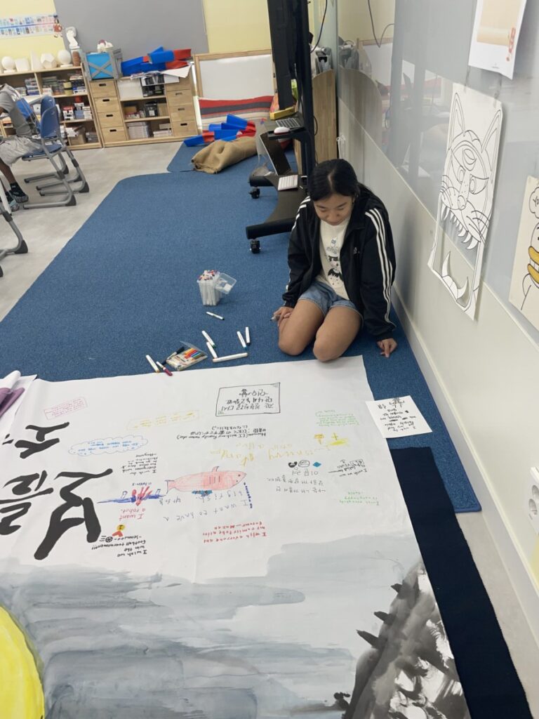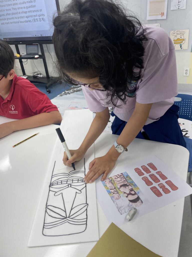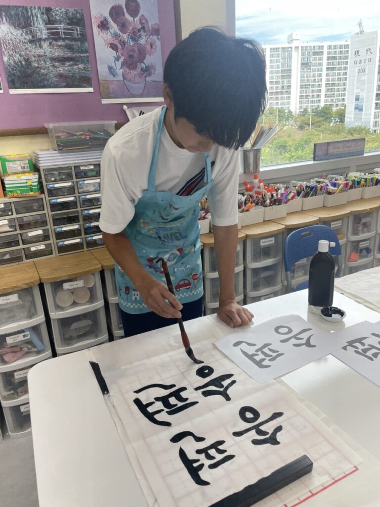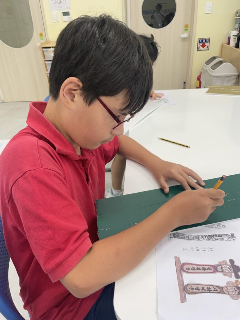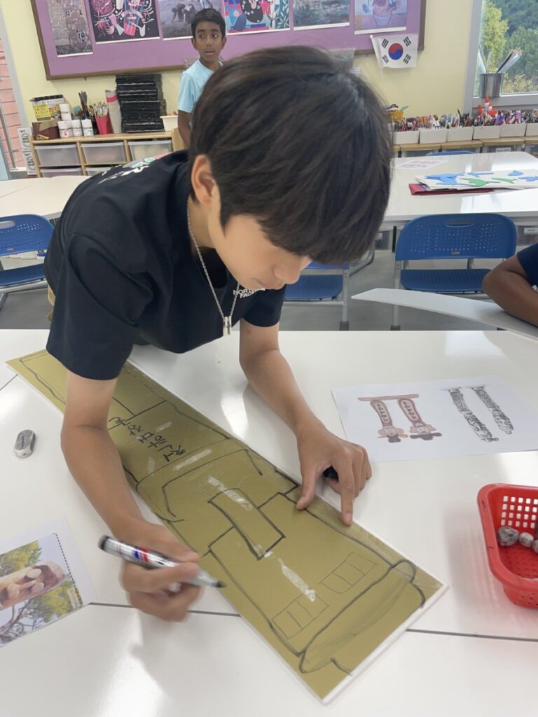 Students who finished this project moved on to a special activity in celebration of the upcoming Chuseok holiday. They explored different versions of the traditional Korean folk painting “The Magpie and the Tiger,” and began sketching their own interpretations of the artwork. It will be exciting to see how their pieces develop into unique and imaginative creations in the coming weeks.