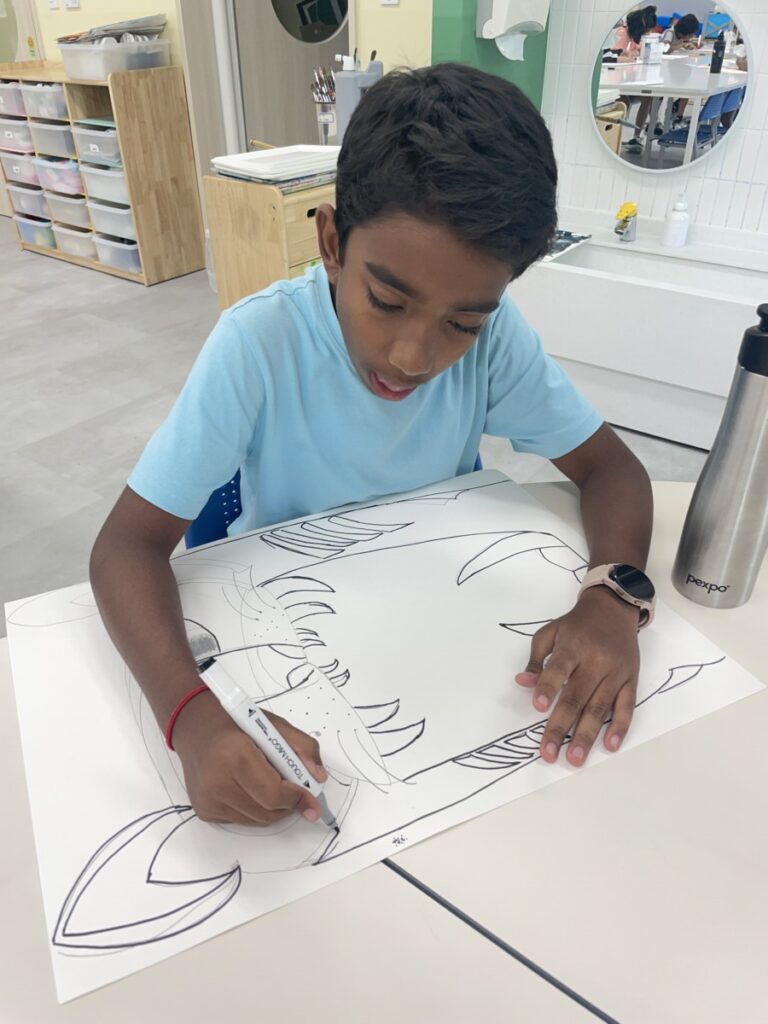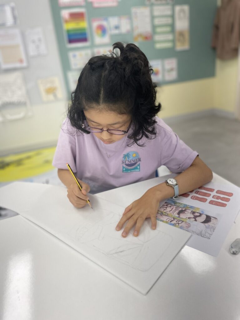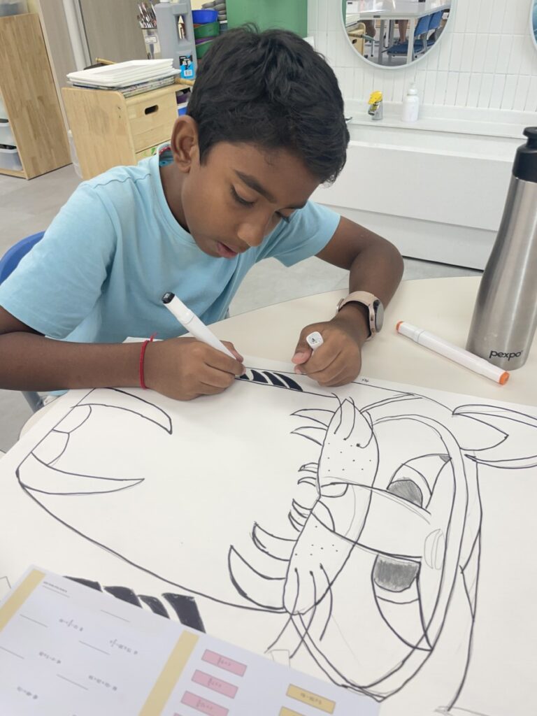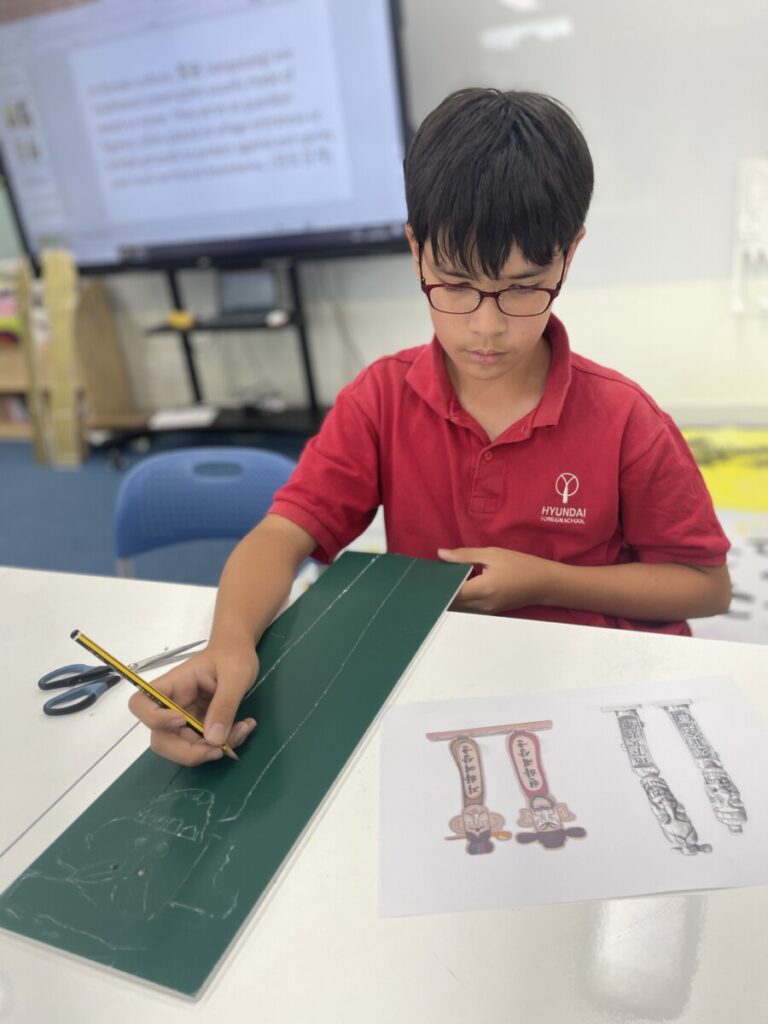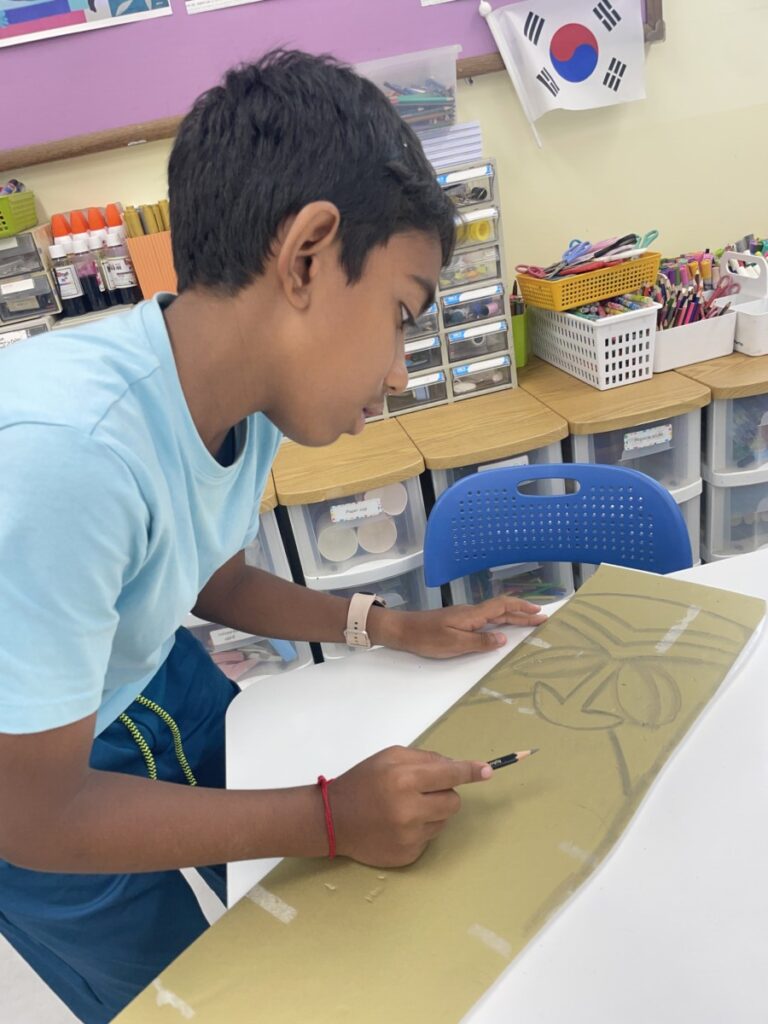 Students who finished this project moved on to a special activity in celebration of the upcoming Chuseok holiday. They explored different versions of the traditional Korean folk painting “The Magpie and the Tiger,” and began sketching their own interpretations of the artwork. It will be exciting to see how their pieces develop into unique and imaginative creations in the coming weeks.