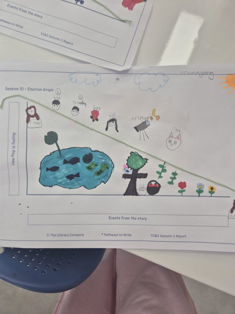 - We explored the owl’s emotions, creating a timeline to help us retell the story.