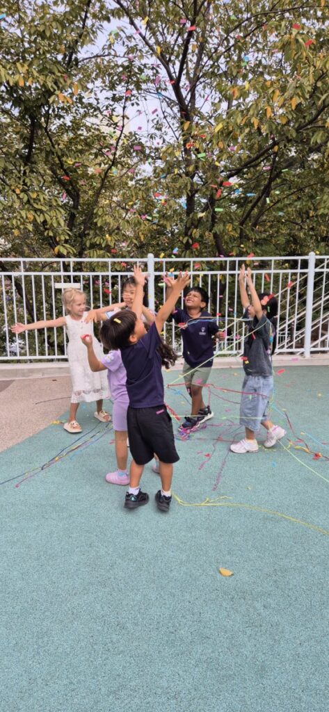What a day we had! The centre was fantastic and the children really enjoyed exploring emotions through messy painting, creating clothes for characters, and designing outfits to show different feelings. The painting turned out to be much messier than I expected, so I was very glad we had worn clothes that could get dirty. After the workshop, we went on to Ochigol Park where the sun was shining and the children had such a wonderful time. They loved the zip line, climbing the giant spider web, chasing mantises, and even finding “chocolate treasure” in the sand. I had also prepared a small toy for them to play with at the park, which was a big hit, though perhaps a little noisy! It was such a joyful day and a perfect fit with our IPC learning.